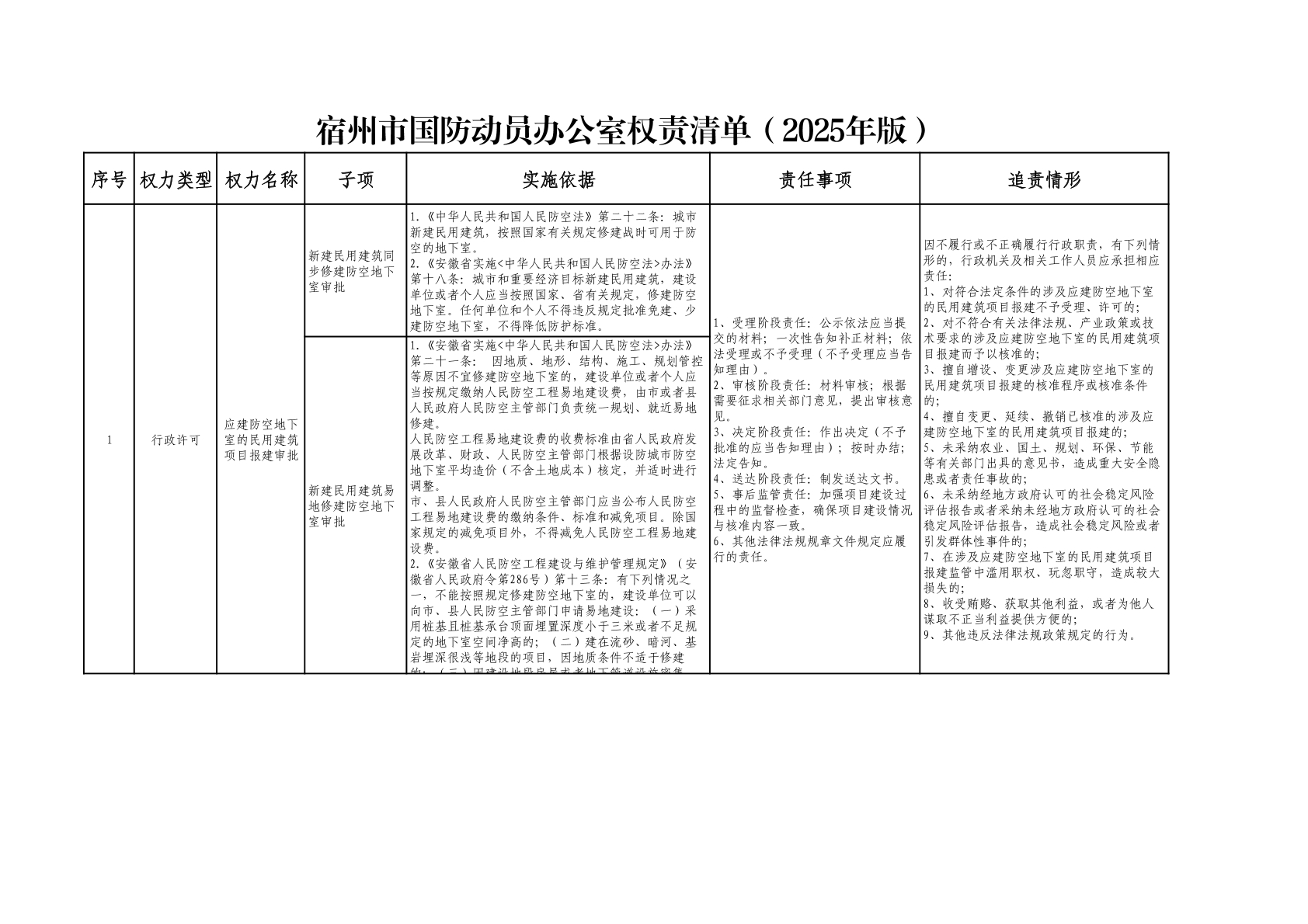 宿州市国防动员办公室权责清单(2025年版) |